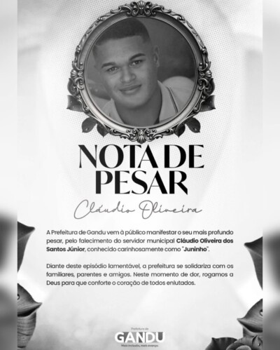 Nota de Pesar. A Prefeitura de Gandu vem à público manifestar o seu mais profundo pesar, pelo falecimento do servidor ...Ceni diz que jogada do gol do Bahia é treinada, mas execução partiu dos jogadores: ...