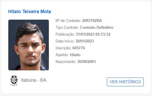O atacante Hítalo deixou o Vitória e assinou com o Itabuna. O contrato em definitivo do atleta com o Dragão do Sul foi publicado no Boletim Informativo Diário (BID) da CBF nesta terça-feira (31).