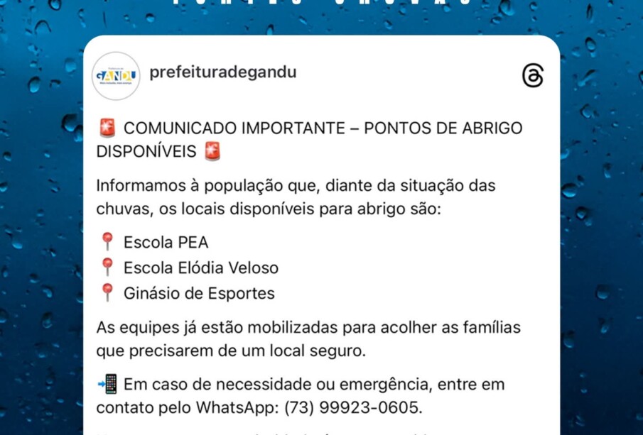 🚨 COMUNICADO IMPORTANTE – PONTOS DE ABRIGO DISPONÍVEIS 🚨